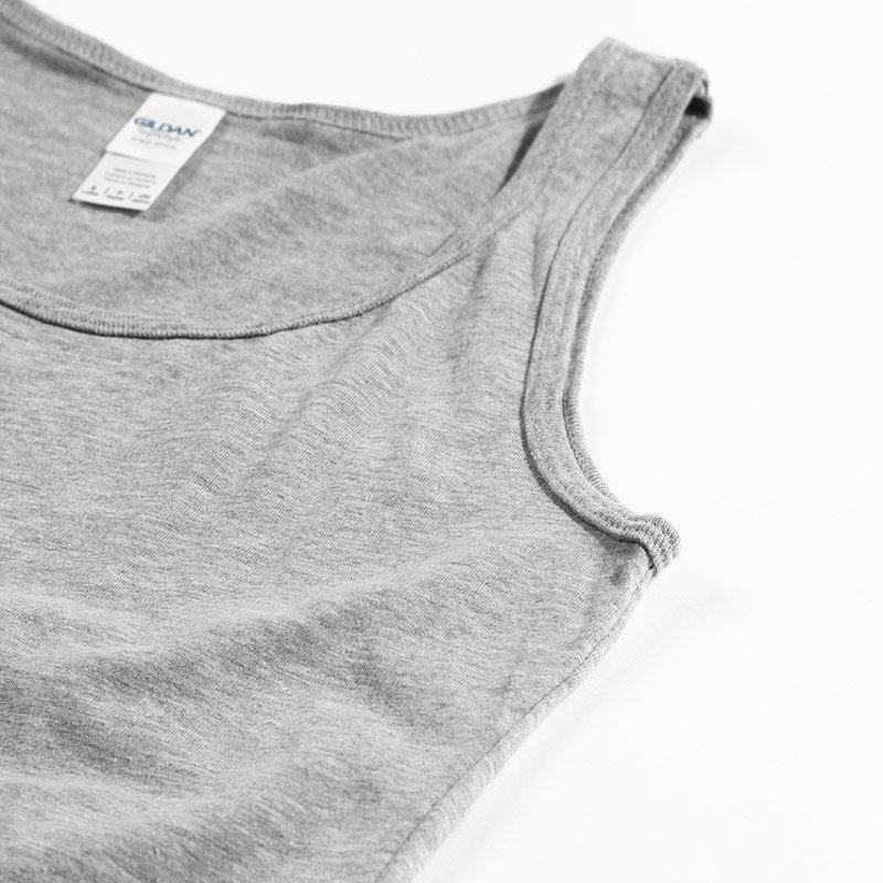 This soft and comfortable tank top has wide straps, and a tear-away label. It’s the perfect basic tank for groups or everyday wear. For those who aren’t fans of the low cut armholes, you’ve come to the right place. This tank has fitted armholes. It is a junior cut, so size up for a more comfortable fit.